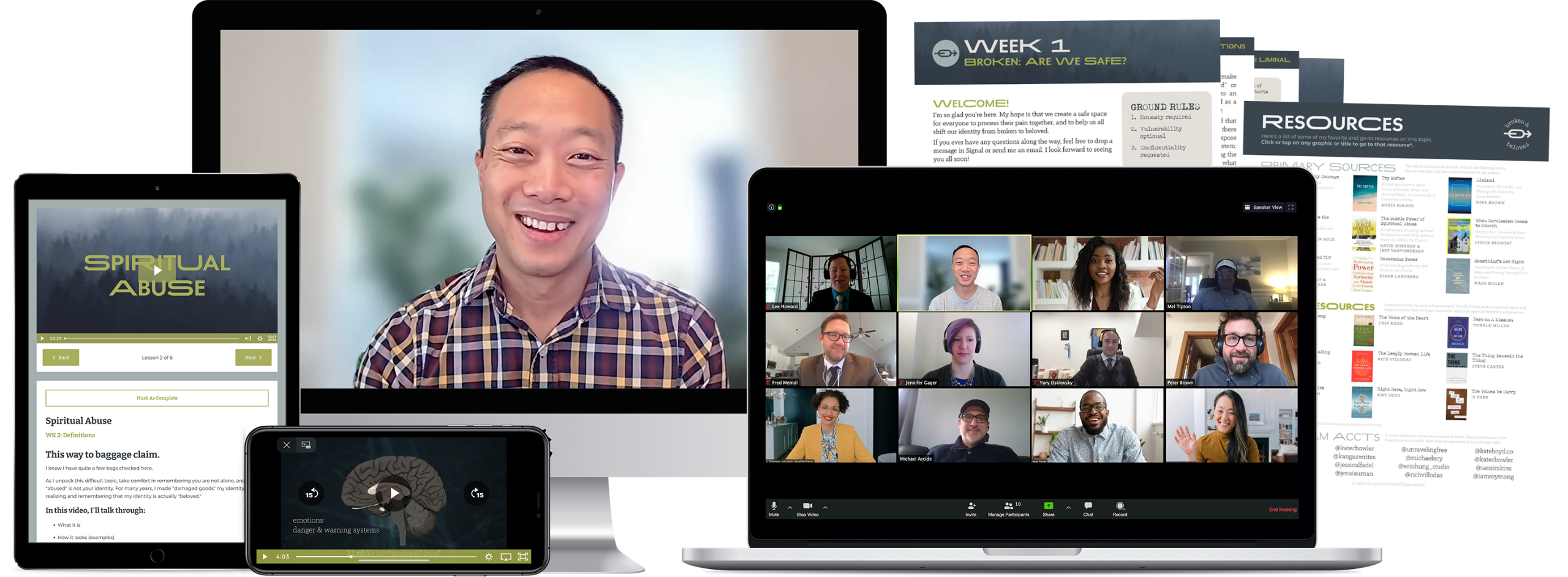 - Weekly Group Session gatherings (on Zoom)